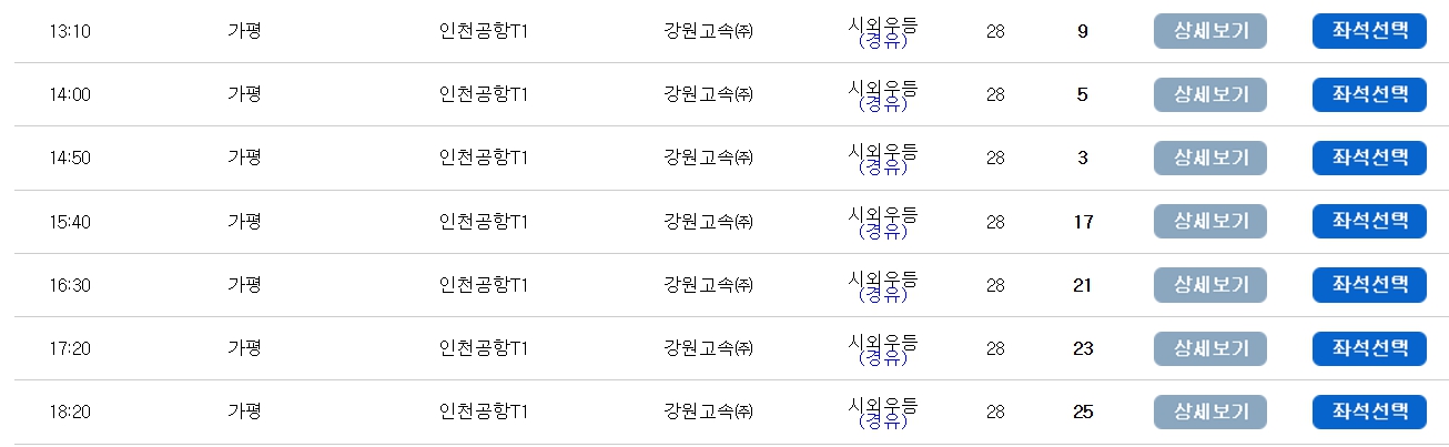 춘천 인천공항 리무진 버스 시간표 요금 예약 방법