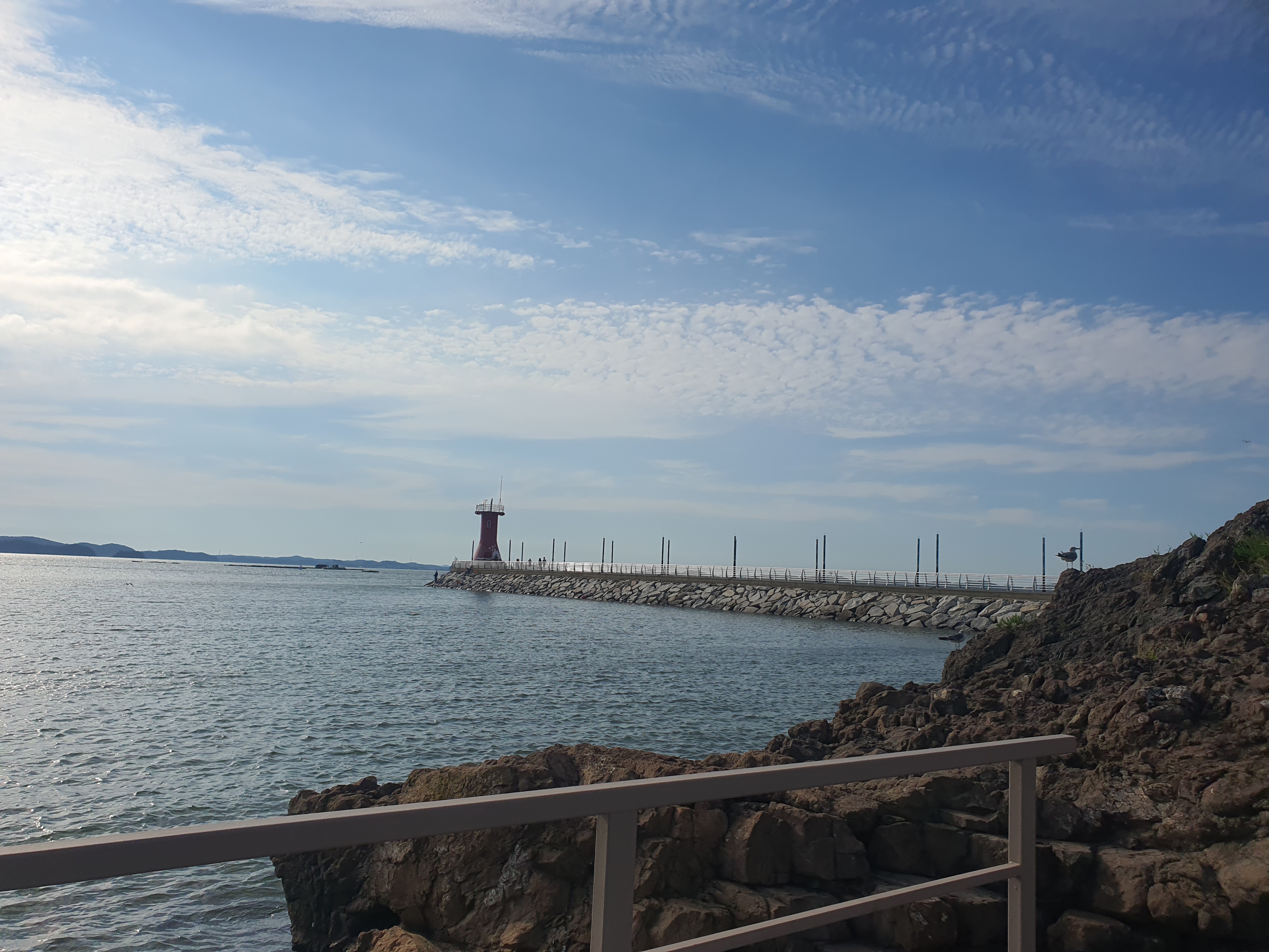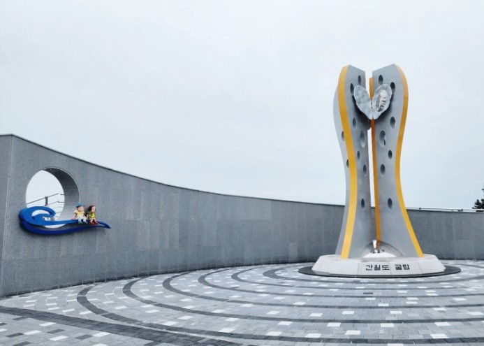 간월도 굴탑에서의 휴식을 취하고 아름다운 풍경을 즐길 수 있는 공간이 새롭게 완공되었습니다. 이곳은 간월도 굴탑 조각상 포토존으로, 사진을 찍거나 휴식을 취하며 즐길 수 있는 좋은 장소입니다.