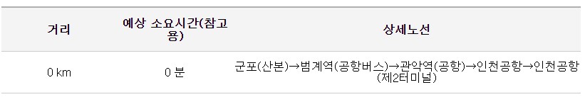 ● 소요 시간: 약 1시간 ~ 1시간 20분 (인천공항 1터미널에서 2터미널까지 약 20분 추가 소요)