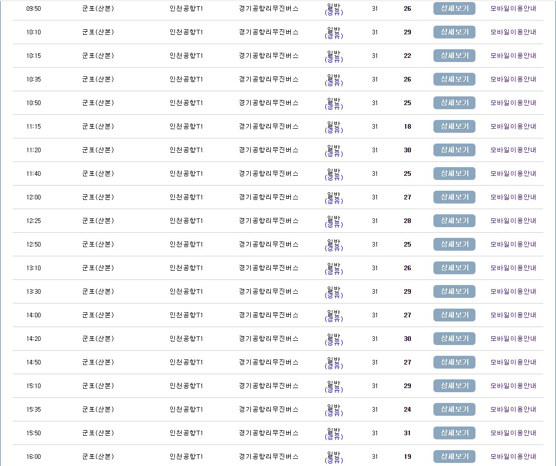 군포(산본)에서 인천공항으로 가는 리무진 버스를 예약하는 방법은 다음과 같습니다. 편리한 예매를 위해 아래 정보를 확인하고 예약하세요.