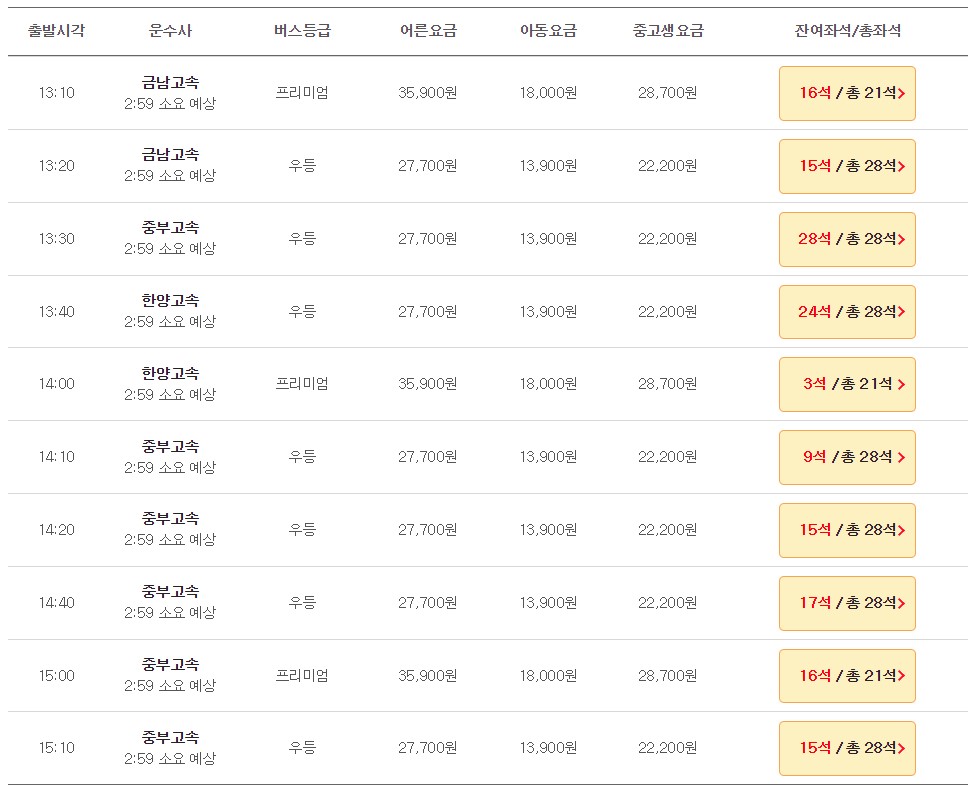 2. 좌석 비지정 노선은 예약이 불가하므로 출발지 터미널 창구에서 예매하시기 바랍니다.
