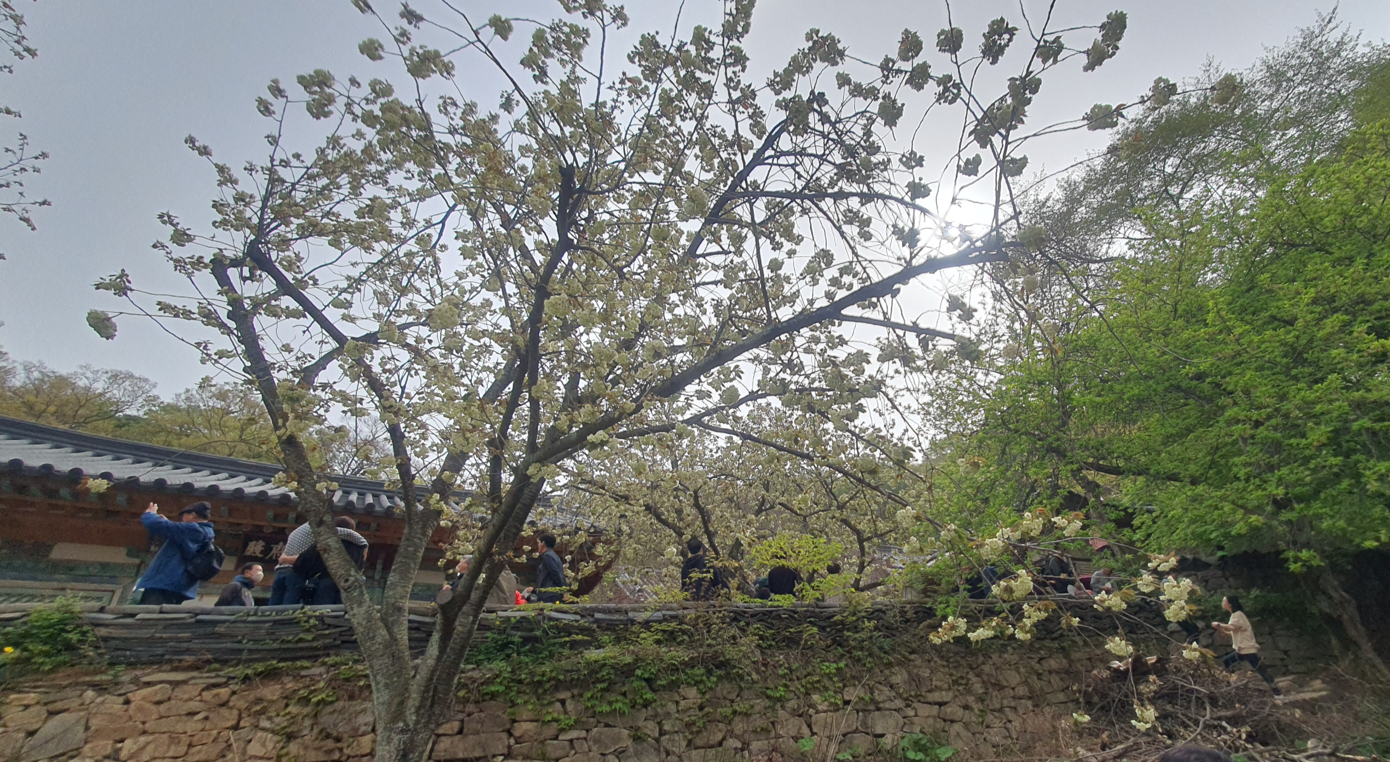 겹벚꽃이 피는 봄에는 사찰 입구까지 주차하러 들어갔다간 차가 너무 혼잡해서 오가지도 못하는 상황이 벌어질 수 있습니다. 차를 놓고 입구부터 걸어오는 게 더 빠르다고 할 정도로 벚꽃이 절정일 때는 마을 입구부터 막혀서 사찰 입구까지 들어가는데만 2시간 이상 소요 될 수 있습니다.