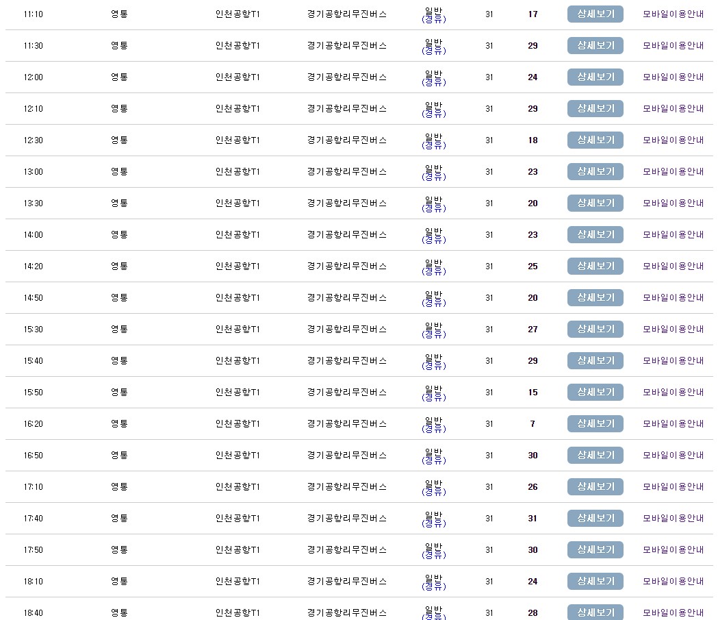 광주 인천공항 리무진 버스 시간표 요금 예약 방법