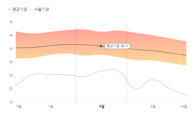 - 평균 기온: 35°C ~ 45°C