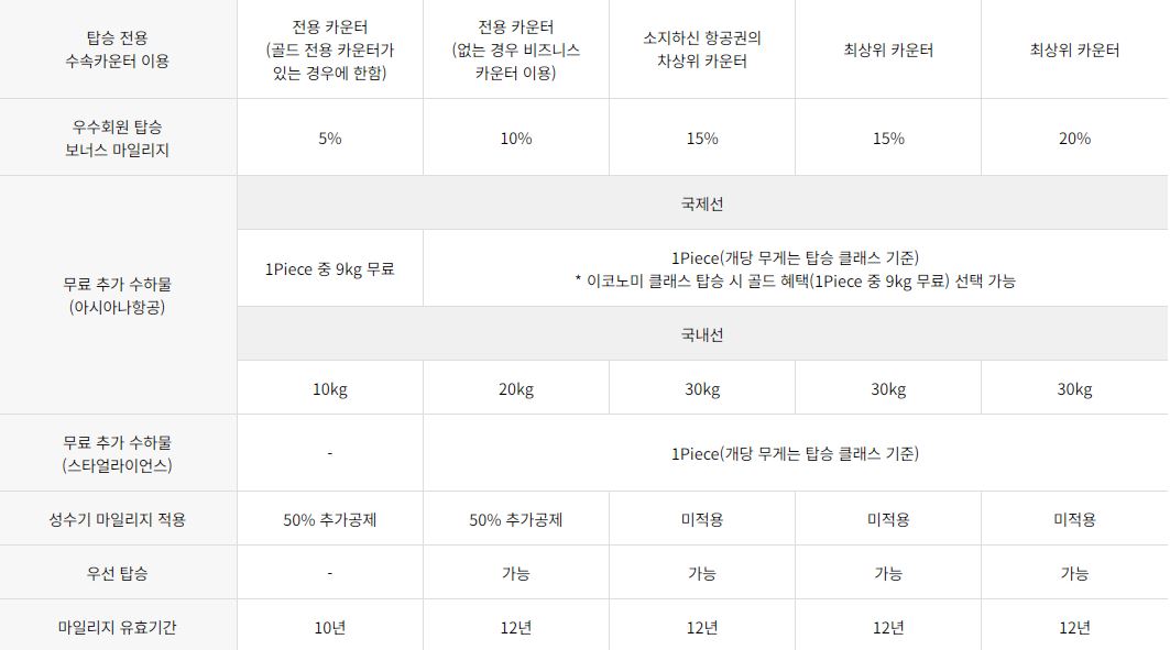 아시아나클럽 우수회원 혜택 요약