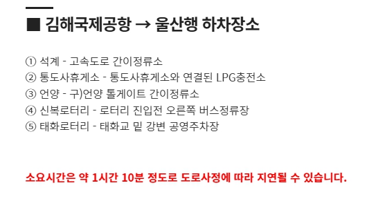 울산 김해공항 리무진 버스 노선 주요 경유지