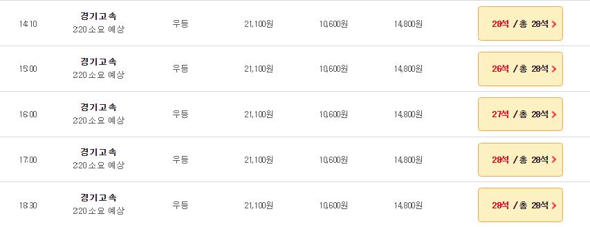 ● 성인: 시외우등 21,100원