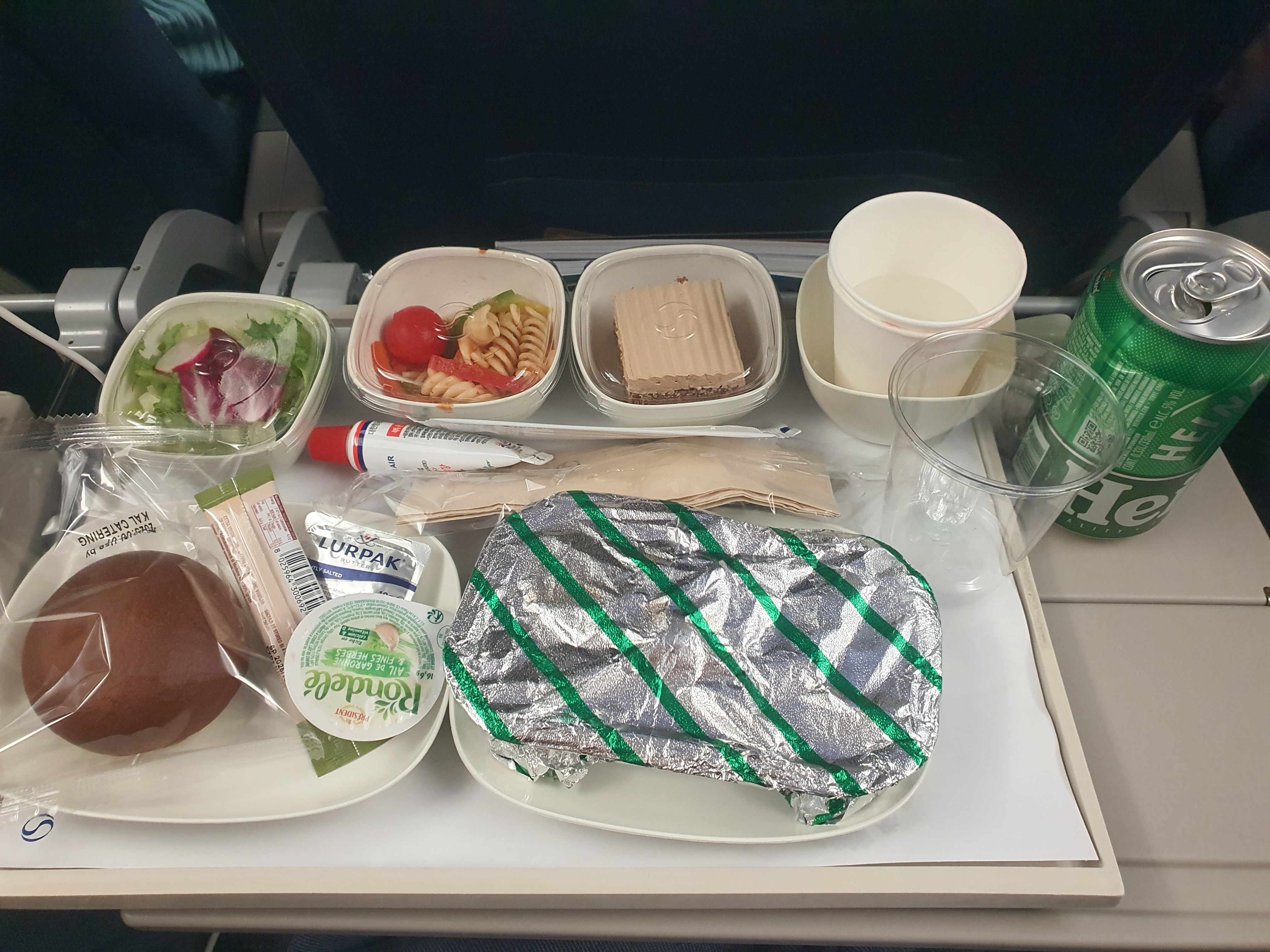 이륙 후 약 30분이 지나자 첫 번째 식사가 나옵니다.