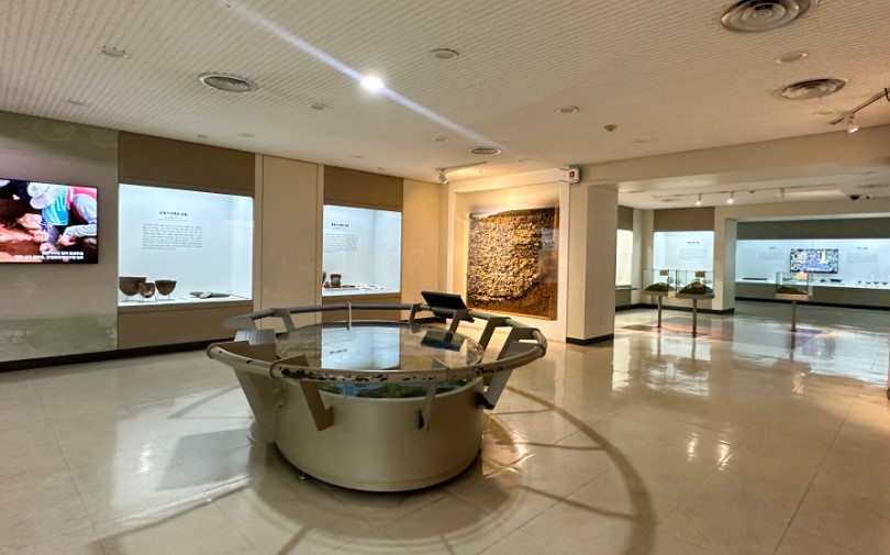 야외전시장: 우현마당에 다양한 유물이 전시됩니다.