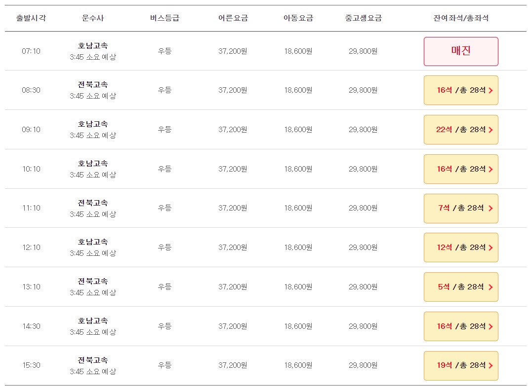 ● 성인: 시외우등 37,200원