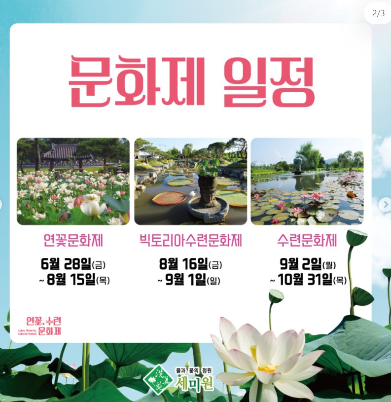 ● 주요 프로그램: 연꽃 사진 콘테스트, 연꽃 차 시음, 연잎밥 만들기 체험 등